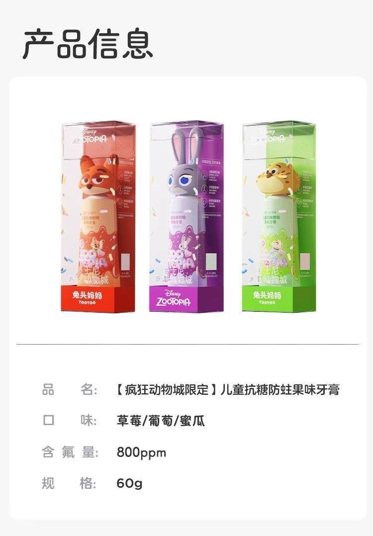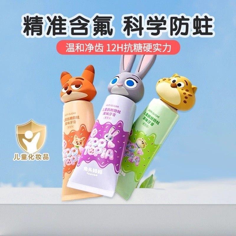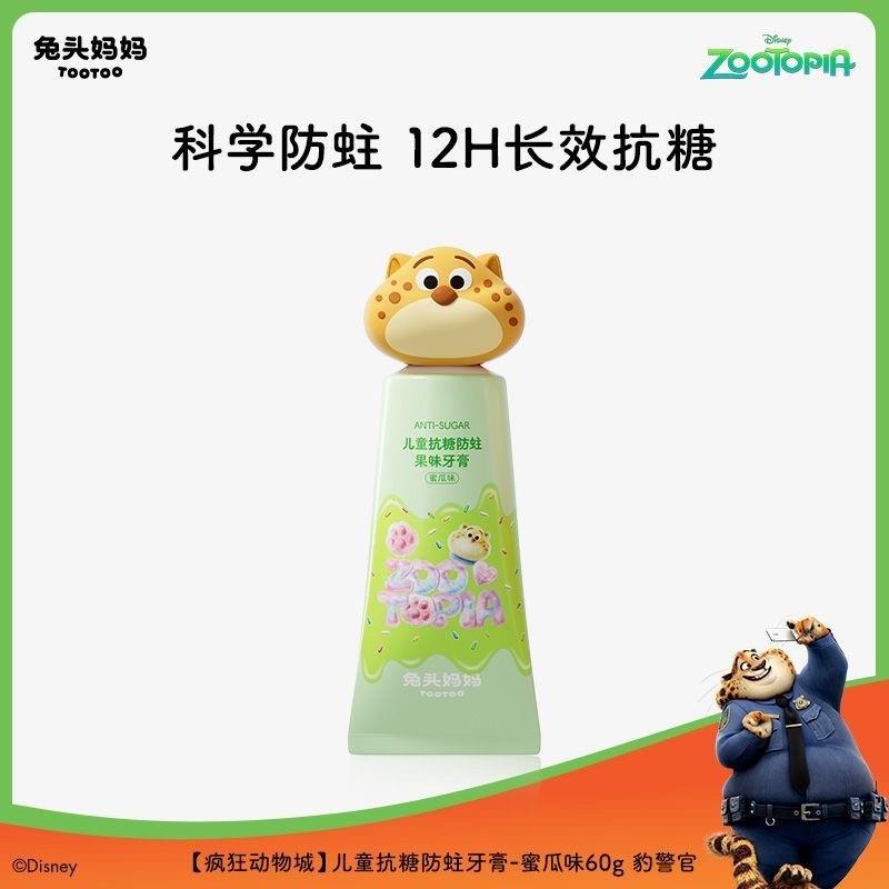 疯狂动物城x兔头妈妈儿童牙膏抗糖防蛀防龋齿含氟牙膏3-6-12岁—豹警官款蜜瓜味60g