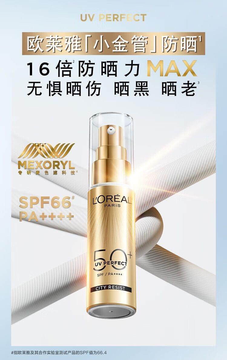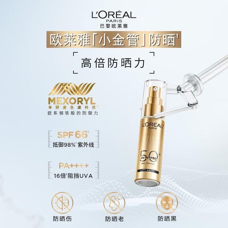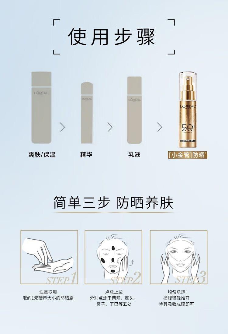 欧莱雅防晒霜小金管新多重防晒隔离露外御内护防晒修护保湿30ml